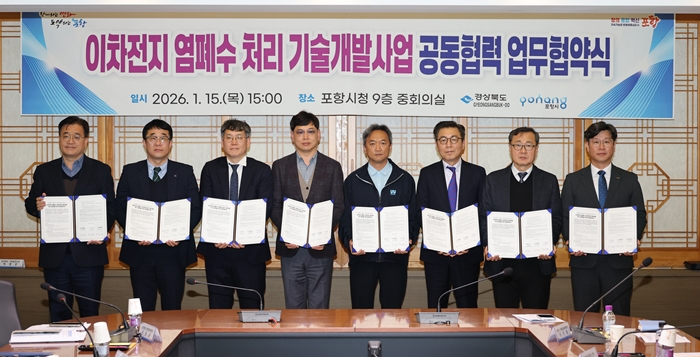 [½Ã»çÄÚ¸®¾ÆÀú³Î=±è¿¬ÇÐ ±âÀÚ] °æºÏµµ´Â 15ÀÏ Æ÷Ç×½Ãû ÁßȸÀǽǿ¡¼ ÀÌÂ÷ÀüÁö »ê¾÷ÀÇ ³Á¦·Î ²ÅÈ÷´Â ¿°Æó¼ö ó¸® ±â¼ú°³¹ßÀ» À§ÇÑ ¾÷¹«Çù¾à(MOU)À» ü°áÇß´Ù.
