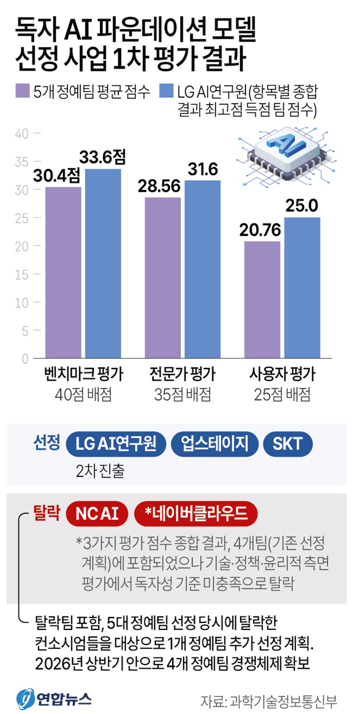 ´Ù¸¸, °ú±âÁ¤ÅëºÎ´Â "µ¶ÀÚ AI ÆÄ¿îµ¥ÀÌ¼Ç ¸ðµ¨ ÇÁ·ÎÁ§Æ®¸¦ ÅëÇØ ¸ðµç Âü¿© ±â¾÷ÀÌ ±Û·Î¹ú ¼öÁØÀ¸·Î µµ¾àÇÒ ±âȸ¸¦ ÁÖ´Â µ¥ ±× ¸ñÀûÀÌ ÀÖ¾ú´Ù"¸ç À̹ø 1Â÷ Æò°¡¿¡¼ Å»¶ôÇÑ ³×À̹öŬ¶ó¿ìµå, NC AI ÄÁ¼Ò½Ã¾ö°ú 5´ë Á¤¿¹ÆÀ ¼±Á¤ ´ç½Ã¿¡ Å»¶ôÇÑ ÄÁ¼Ò½Ã¾öµéÀ» ´ë»óÀ¸·Î 1°³ Á¤¿¹ÆÀÀ» Ãß°¡·Î ¼±Á¤ÇÑ´Ù°í ¹àÇû´Ù.