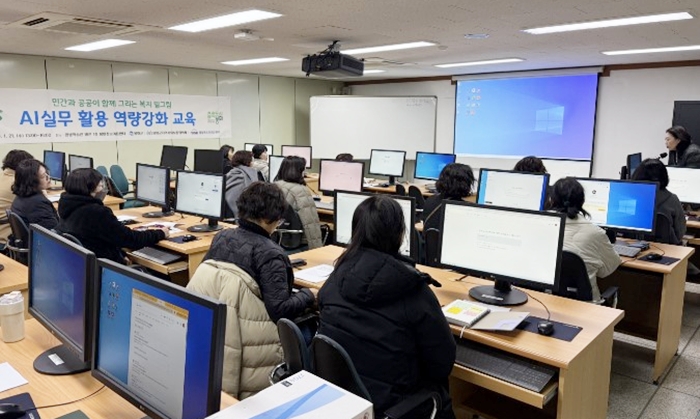 [½Ã»çÄÚ¸®¾ÆÀú³Î=±è¿¬ÇÐ ±âÀÚ] ºÀȱº Áö¿ª»çȸº¸ÀåÇùÀÇü´Â Áö³ 21ÀÏ ºÀȱº Æò»ýÇнÀ°ü º°°ü ºÀÈÁ¤º¸À̿뼾ÅÍ¿¡¼ Áö¿ª º¹Áö±â°ü Á¾»çÀÚ ¹× ÇùÀÇü À§¿ø 30¸íÀ» ´ë»óÀ¸·Î ‘AI ½Ç¹« Ȱ¿ë ¿ª·®°È ±³À°’À» ÁøÇàÇß´Ù.