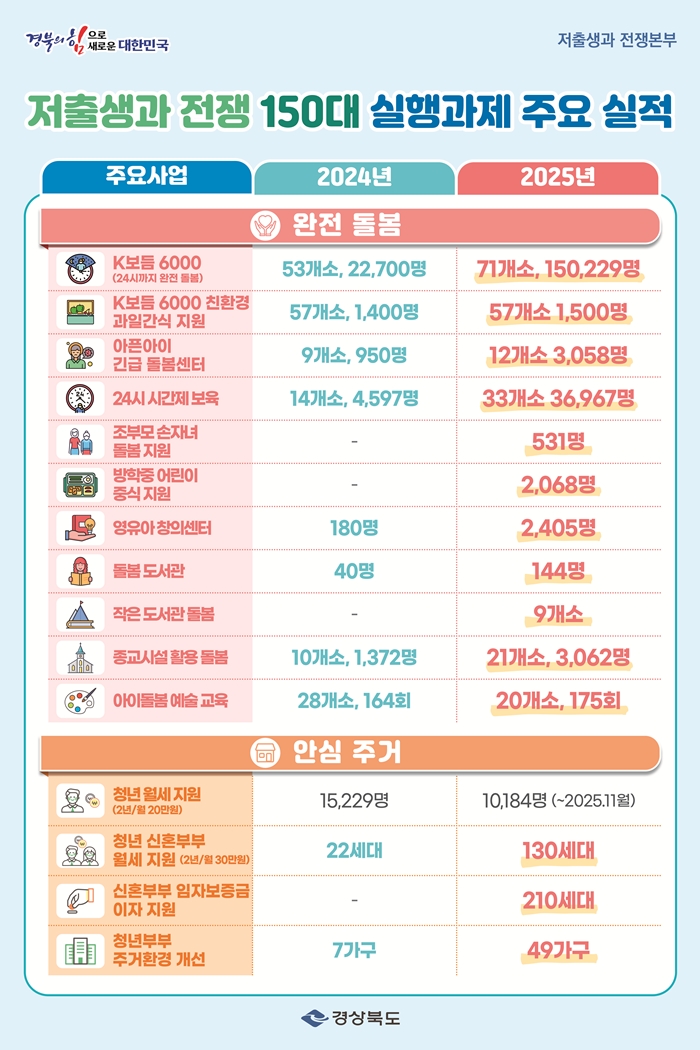 ÀÌö¿ì °æºÏµµÁö»ç´Â “2025³âÀº ÀúÃâ»ý°ú ÀüÀïÀÌ ±¸È£¸¦ ³Ñ¾î µµ¹ÎÀÇ Àϻ󿡼 ½ÇÁ¦ º¯È¸¦ ¸¸µç ÇØ¿´´Ù. ¸¸³²·Ãâ»ê·µ¹º½·ÁÖ°Å·Àϰú »îÀÇ ±ÕÇü Àü¹Ý¿¡¼ ÇöÀåÀÇ Ã¼°¨µµ°¡ ºÐ¸íÈ÷ ³ô¾ÆÁ³°í, ¾ÆÀ̸¦ Ű¿ì´Â ºÎ´ãÀ» »çȸ°¡ ÇÔ²² ³ª´«´Ù´Â ÀÎ½Ä º¯Èµµ ³ªÅ¸³ª°í ÀÖ´Ù. 2026³â¿¡´Â ¼±Åðú ÁýÁßÀ» ÅëÇØ È¿°ú°¡ °ËÁõµÈ Á¤Ã¥Àº ´õ Ű¿ì°í, Áߺ¹µÇ°Å³ª ü°¨µµ°¡ ³·Àº °úÁ¦´Â °ú°¨È÷ Á¤ºñÇϰڴٔ¸ç “°æºÏÀº AI¿Í ½Å±â¼úÀ» °áÇÕÇÑ µ¹º½·±³À° Çõ½Å, Áö¿ª °øµ¿Ã¼ ȸº¹À» ÅëÇØ ´ëÇѹα¹ Àα¸Á¤Ã¥ÀÇ »õ·Î¿î ÇØ¹ýÀ» ÇöÀå¿¡¼ Áõ¸íÇØ ³ª°¡°Ú´Ù”¶ó°í °Á¶Çß´Ù.