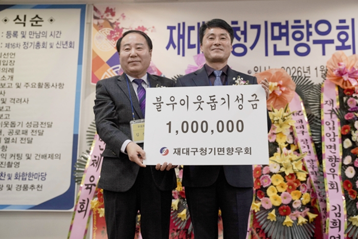 ÀÌ ³¯ Àç´ë±¸ û±â¸é Çâ¿ìȸ(ȸÀå ±è°æµ¿)Àº ºÒ¿ìÀÌ¿ôµ½±â ¼º±Ý 100¸¸¿øÀ» û±â¸é »ç¹«¼Ò(¸éÀå ±Ç¿µ¼ö)¿¡ Àü´ÞÇÏ¿© Áö¿ª»çȸ »ç¶û³ª´®À» ½ÇõÇß´Ù.