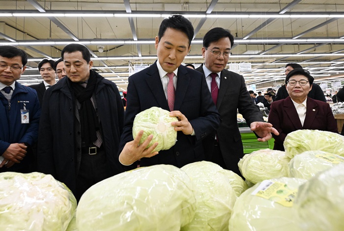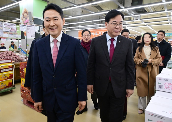 | ±¹¹ÎÀÇÈû À嵿Çõ ´ëÇ¥°¡ 28ÀÏ ¼¿ï ¼Ãʱ¸ Çϳª·Î¸¶Æ® ¾çÀçÁ¡À» ¹æ¹®ÇØ ¹°°¡¸¦ »ìÆìº¸¸ç ¹Ì¼Ò Áþ°í ÀÖ´Ù. /°øµ¿ÃëÀç |