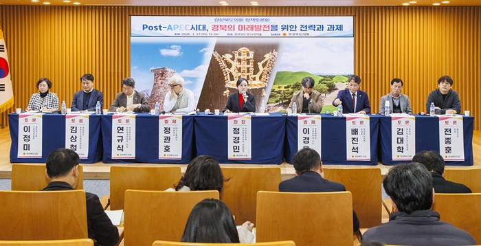 [½Ã»çÄÚ¸®¾ÆÀú³Î=±è¿¬ÇÐ ±âÀÚ] °æ»óºÏµµÀÇȸ´Â Áö³ 27ÀÏ °æ»óºÏµµÃ» ´Ù¸ñÀûȦ¿¡¼ APEC ¹× ¹®È°ü±¤ºÐ¾ß Àü¹®°¡ ¹× °ü°è°ø¹«¿ø µî°ú ÇÔ²² ‘Post-APEC½Ã´ë, °æºÏÀÇ ¹Ì·¡¹ßÀüÀ» À§ÇÑ Àü·«°ú °úÁ¦’¶ó´Â ÁÖÁ¦·Î Á¤Ã¥Åä·Ðȸ¸¦ °³ÃÖÇß´Ù.