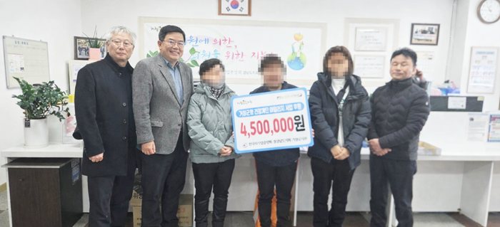[½Ã»çÄÚ¸®¾ÆÀú³Î=Á¤Á¾¹Î ¼±ÀÓ±âÀÚ] °ÅⱺÀº 2ÀÏ Çѱ¹¿Ü½Ä¾÷Áß¾Óȸ °ÅⱺÁöºÎ(ÁöºÎÀå ±èÀϱ¸)¿¡¼ Áúº´ Ä¡·á¿¡ ¾î·Á¿òÀ» °Þ°í ÀÖ´Â Áö¿ªÁֹΠ3¸í¿¡°Ô °Ç°°è´Ü ¸¶Àϸ®Áö ÈÄ¿ø±Ý ÃÑ 450¸¸ ¿øÀ» Àü´ÞÇß´Ù°í ¹àÇû´Ù.