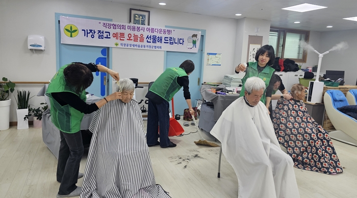 Çù¾à½Ä Á÷ÈÄ ÁøÇàµÈ ù ºÀ»çȰµ¿¿¡¼´Â »õ¸¶À»Á÷ÀåÇùÀÇȸ ¼Ò¼Ó ¹Ì¿ë ±â¼ú º¸À¯ ȸ¿øµéÀÌ Âü¿©ÇÏ¿© ¾î¸£½Å 40¿© ¸íÀÇ ¸Ó¸®¸¦ Á¤¼º½º·´°Ô ´Ùµë¾úÀ¸¸ç, ±ò²ûÇÏ°Ô º¯ÇÑ ¸ð½À¿¡ ¾î¸£½ÅµéÀº °Å¿ïÀ» º¸¸ç ¹àÀº ¹Ì¼Ò·Î È´äÇÏ¸ç °í¸¶¿òÀ» ÀüÇß´Ù.