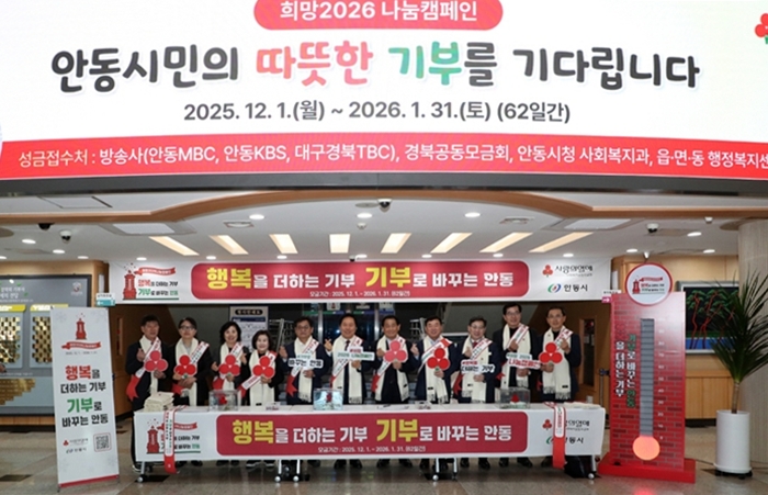 [½Ã»çÄÚ¸®¾ÆÀú³Î=±è¿¬ÇÐ ±âÀÚ] ¾Èµ¿½Ã°¡ ‘ÇູÀ» ´õÇÏ´Â ±âºÎ, ±âºÎ·Î ¹Ù²Ù´Â ¾Èµ¿’À̶ó´Â ½½·Î°ÇÀ¸·Î 2025³â 12¿ù 1ÀϺÎÅÍ 2026³â 1¿ù 31ÀϱîÁö ÃÑ 62Àϰ£ ½Ç½ÃÇÑ ‘Èñ¸Á2026 ³ª´®Ä·ÆäÀÎ’¿¡¼ 9¾ï 4õ¸¸ ¿øÀ» ¸ð±ÝÇÏ¸ç »ç¶ûÀÇ ¿Âµµ 134¡É¸¦ ±â·ÏÇß´Ù.