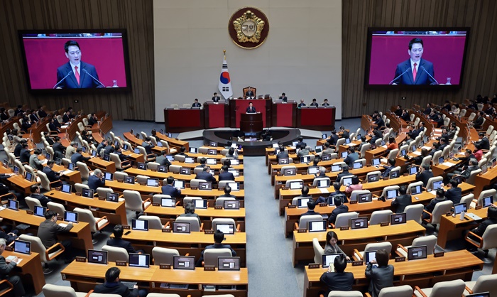 | ±¹¹ÎÀÇÈû À嵿Çõ ´ëÇ¥°¡ 4ÀÏ ±¹È¸¿¡¼ ¿¸° Á¦432ȸ ±¹È¸(ÀÓ½Ãȸ) Á¦3Â÷ º»È¸ÀÇ¿¡¼ ±³¼·´Üü ´ëÇ¥¿¬¼³À» Çϰí ÀÖ´Ù. /¿¬ÇÕ´º½º |