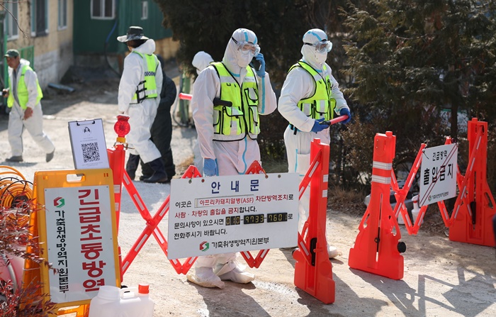 | 4ÀÏ °æ³² â³ç±º ´ëÇÕ¸é ¾ÆÇÁ¸®Ä«µÅÁö¿º´(ASF)ÀÌ ¹ß»ýÇÑ µÅÁö »çÀ° ³ó°¡ ÁÖº¯¿¡¼ ¹æ¿ª ´ç±¹ °ü°èÀÚ°¡ »ìóºÐÀ» ÁغñÇϰí ÀÖ´Ù. /¿¬ÇÕ´º½º ÀÚ·á»çÁø |