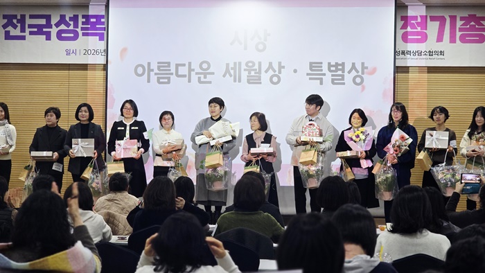 [½Ã»çÄÚ¸®¾ÆÀú³Î=Á¤Á¾¹Î ¼±ÀÓ±âÀÚ] °ÅÁ¦YWCA¼ºÆø·Â»ó´ã¼Ò ¼Õ¿µ¼ø ¼ÒÀåÀÌ Àü±¹¼ºÆø·Â»ó´ã¼ÒÇùÀÇȸ°¡ ¼ö¿©ÇÏ´Â ‘¾Æ¸§´Ù¿î ¼¼¿ù»ó’À» ¼ö»óÇÏ´Â ¿µ¿¹¸¦ ¾È¾Ò´Ù.