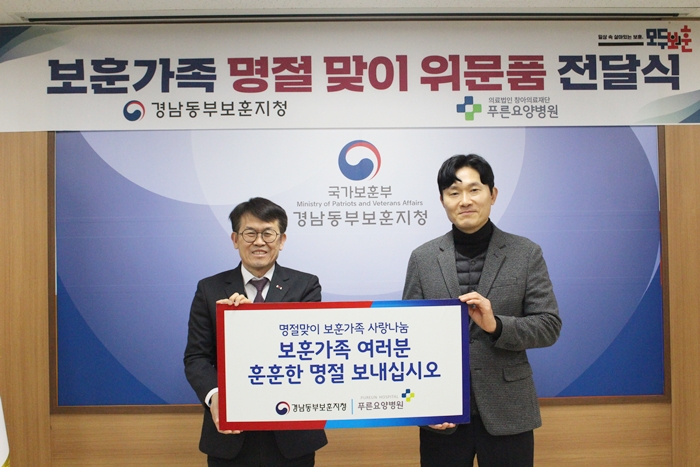 [½Ã»çÄÚ¸®¾ÆÀú³Î=±è¿¬ÇÐ ±âÀÚ] °æ³²µ¿ºÎº¸ÈÆÁöû(ÁöûÀå ±è»ó¿ì)Àº 10ÀÏ Á¤ºÎ°æ³²Áö¹æÇÕµ¿Ã»»ç¿¡¼ Ãß¼®¸íÀýÀ» ¸Â¾Æ Ǫ¸¥¿ä¾çº´¿ø(´ëÇ¥ ¹ÚÀå½Ä)°ú ÇÔ²² º¸Èư¡Á·À» À§ÇÑ À§¹®Ç° Àü´Þ½ÄÀ» °¡Á³´Ù.