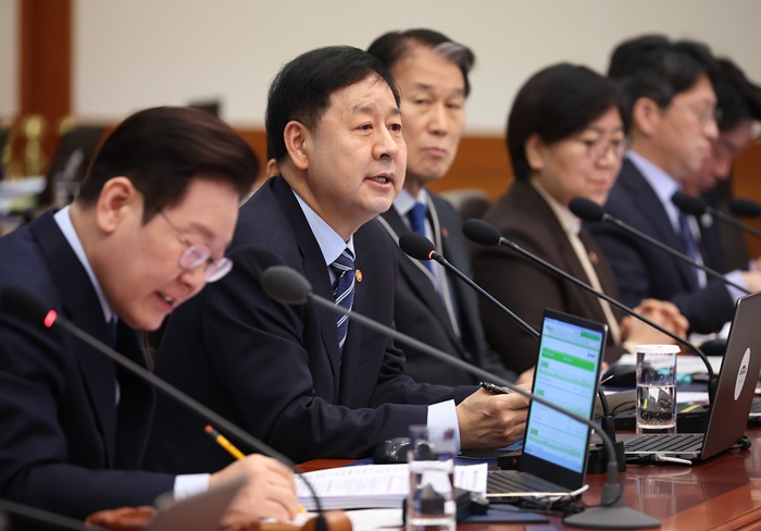 | ÀÌÀç¸í ´ëÅë·ÉÀÌ 10ÀÏ Ã»¿Í´ë¿¡¼ ¿¸° ±¹¹«È¸ÀÇ¿¡¼ ±¸À±Ã¶ ºÎÃѸ® °â ÀçÁ¤°æÁ¦ºÎ Àå°ü°ú ´ëÈÇϰí ÀÖ´Ù. /¿¬ÇÕ´º½º |