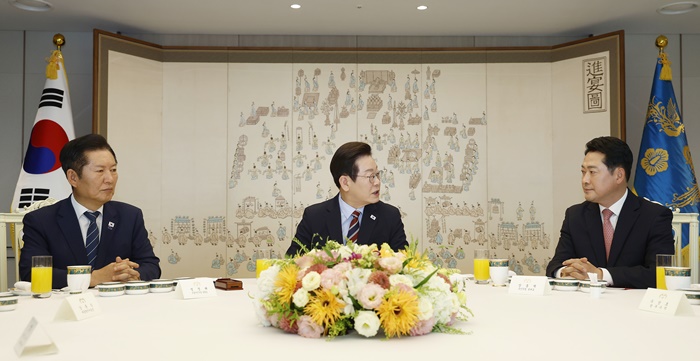 [½Ã»çÄÚ¸®¾ÆÀú³Î=±è¿¬ÇÐ ±âÀÚ] ÀÌÀç¸í ´ëÅë·ÉÀÌ 12ÀÏ Ã»¿Í´ë·Î ´õºÒ¾î¹ÎÁÖ´ç Á¤Ã»·¡ ´ëÇ¥¿Í ±¹¹ÎÀÇÈû À嵿Çõ ´ëÇ¥¸¦ ÃÊÃ»ÇØ ¿ÀÂùÀ» ÇÑ´Ù°í °ÈÆ½Ä ´ëÅë·É ºñ¼½ÇÀåÀÌ 11ÀÏ ºê¸®Çο¡¼ ¹àÇû´Ù.