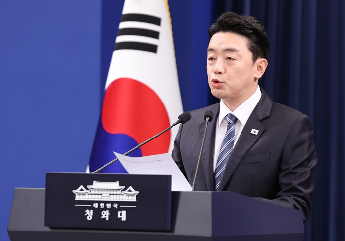 | °ÈÆ½Ä ´ëÅë·Éºñ¼½ÇÀåÀÌ 11ÀÏ Ã»¿Í´ë ±âÀÚȸ°ßÀå¿¡¼ ÀÌÀç¸í ´ëÅë·É°ú ¿©¾ß ¾ç´ç ´ëÇ¥ ¿ÀÂù ȸµ¿¿¡ °üÇØ ¹ßÇ¥Çϰí ÀÖ´Ù. /¿¬ÇÕ´º½º |