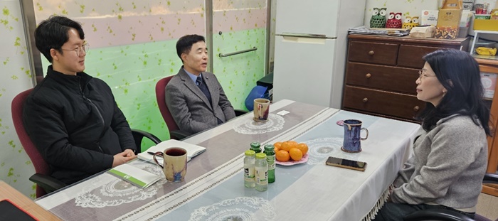 | Çѱ¹Àç·á¿¬±¸¿ø ¹Ú´ë¼® ÇàÁ¤º»ºÎÀåÀº 10ÀÏ Ã¢¿ø½Ã ÀÇⱸ ºÏ¸é¿¡ ÀÖ´Â (»ç)Çѱ¹Àå¾ÖÀκθðȸ °æ³²Áöȸ µµ´ãµµ´ã Àå¾ÖÀÎÁÖ°£º¸È£½Ã¼³À» ¹æ¹®, À±Çö¹Ì ¿øÀå(¿À¸¥ÂÊ)°ú ȯ´ãÀ» ³ª´©°í ÀÖ´Ù. |
