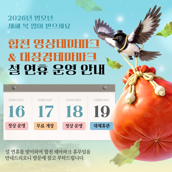 ÇÑÆí, ¼³³¯ ´çÀÏÀÎ 2¿ù 17ÀÏ¿¡´Â Å׸¶ÆÄÅ© ¸ðµÎ ¹«·á·Î °³¹æµÇ°í, ÁÖ¸»À» Æ÷ÇÔ 14ÀϺÎÅÍ 18ÀϱîÁö Á¤»ó ¿î¿µÇÏ¸ç ¿¬ÈÞ ÈÄ Ã¹ ÈÞ°üÀÏÀº 19ÀÏ(¸ñ¿äÀÏ)ÀÌ´Ù.