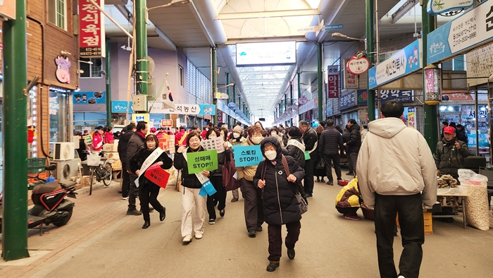 [½Ã»çÄÚ¸®¾ÆÀú³Î=±è¿¬ÇÐ ±âÀÚ] ºÀȱºÀº ¼³ ¸íÀýÀ» ¾ÕµÐ 12ÀÏ ºÀȻ󼳽ÃÀå ÀÏ´ë¿¡¼ ºÀȱº¿©¼º´ÜüÇùÀÇȸ ȸ¿ø 40¿©¸í°ú ÇÔ²²‘5´ë Æø·Â ¿¹¹æ ÇÕµ¿Ä·ÆäÀÎ’À» ÁøÇàÇß´Ù. Áö³ 9ÀÏ¿¡´Â ¾ïÁöÃá¾ç½ÃÀå¿¡¼ ù Ä·ÆäÀÎÀÌ ÁøÇàµÈ ¹Ù ÀÖÀ¸¸ç, À̹ø Ȱµ¿Àº ¸íÀý ±â°£ ÀüÅë½ÃÀåÀ» ÀÌ¿ëÇÏ´Â ÁֹεéÀ» ´ë»óÀ¸·Î ¸ÂÃãÇü È«º¸ÀÇ ÀÏȯÀ¸·Î ±âȹµÆ´Ù.