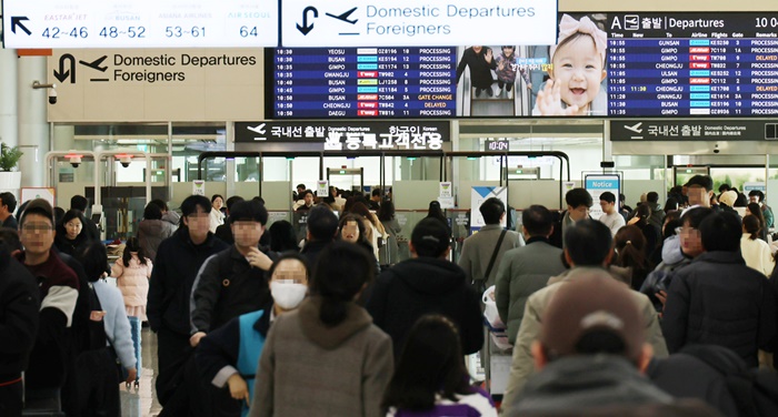 | ¼³ ¿¬ÈÞ ¸¶Áö¸· ³¯ÀÎ 18ÀÏ Á¦ÁÖ°øÇ× ±¹³»¼± Ãâ¹ß ´ëÇÕ½ÇÀÌ ºÎ¸ð, ÇüÁ¦µé°ú ¾Æ½¬¿î ÀÛº° Àλ縦 ÇÏ°í µ¹¾Æ°¡´Â ±Í°æ°´°ú Á¦ÁÖ ¿©ÇàÀ» ¸¶Ä¡°í µ¹¾Æ°¡´Â °ü±¤°´µé·Î ºÕºñ°í ÀÖ´Ù. /¿¬ÇÕ´º½º |