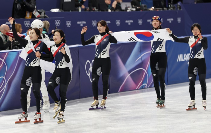 | 18ÀÏ(ÇöÁö½Ã°£) ÀÌÅ»¸®¾Æ ¹Ð¶ó³ë ¾ÆÀ̽º½ºÄÉÀÌÆÃ ¾Æ·¹³ª¿¡¼ ¿¸° 2026 ¹Ð¶ó³ë-ÄÚ¸£Æ¼³ª´ãÆäÃÊ µ¿°è¿Ã¸²ÇÈ ¼îƮƮ·¢ ¿©ÀÚ 3000m °èÁÖ °á½Â¿¡¼ ±Ý¸Þ´ÞÀ» µû³½ Çѱ¹ ÃÖ¹ÎÁ¤°ú ±è±æ¸® µî ¼±¼öµéÀÌ ¼¼¸®¸Ó´Ï¸¦ Çϰí ÀÖ´Ù. /¿¬ÇÕ´º½º |
