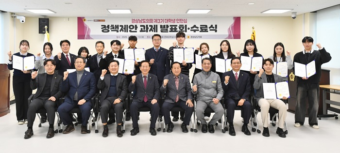 [½Ã»çÄÚ¸®¾ÆÀú³Î=Á¤Á¾¹Î ¼±ÀÓ±âÀÚ] °æ³²µµÀÇȸ(ÀÇÀå ÃÖÇйü)´Â 12ÀÏ µµÀÇȸ ¹®È°Á½ǿ¡¼ ‘Á¦3±â ´ëÇлý ÀÎÅÏ½Ê Á¤Ã¥Á¦¾È °úÁ¦ ¹ßǥȸ ¹× ¼ö·á½Ä’À» °³ÃÖÇϰí, 6ÁÖ°£ÀÇ ´ëÇлý ÀÎÅÏ½Ê »ç¾÷À» ¼º°øÀûÀ¸·Î ¸¶¹«¸®Çß´Ù.