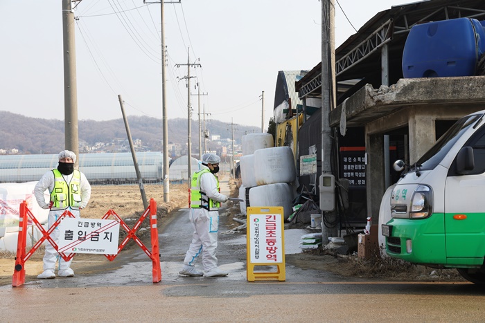 ³ó¸²Ãà»ê½ÄǰºÎ¿Í Áö¹æÀÚÄ¡´Üü´Â Àü¿°º´ÀÌ ¹ß»ýÇÑ ³óÀåÀ» Áß½ÉÀ¸·Î À̵¿ Á¦ÇѰú ¼Òµ¶À» ÇÏ´Â µî ¹æ¿ª¿¡ ¾È°£ÈûÀ» ¾²°í ÀÖ´Ù.
