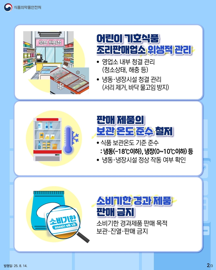 ÁÖ¿ä Á¡°Ë ³»¿ëÀº ¡ã¼Òºñ±âÇÑ °æ°ú Á¦Ç° Áø¿·º¸°ü ¿©ºÎ ¡ãÁ¶¸®½Ã¼³ ¹× ÆÇ¸Å½Ã¼³ À§»ý°ü¸® »óÅ ¡ã½ÄÀç·á ¹× ³Ãµ¿·³ÃÀå½Äǰ º¸°ü±âÁØ Áؼö ¿©ºÎ ¡ã°í¿·®·Àú¿µ¾ç½Äǰ ¹× °íÄ«ÆäÀÎ ½Äǰ ÆÇ¸Å ¿©ºÎ ¡ã½ÄǰÀ§»ý¹ý·É Áؼö ¿©ºÎ µîÀÌ´Ù.