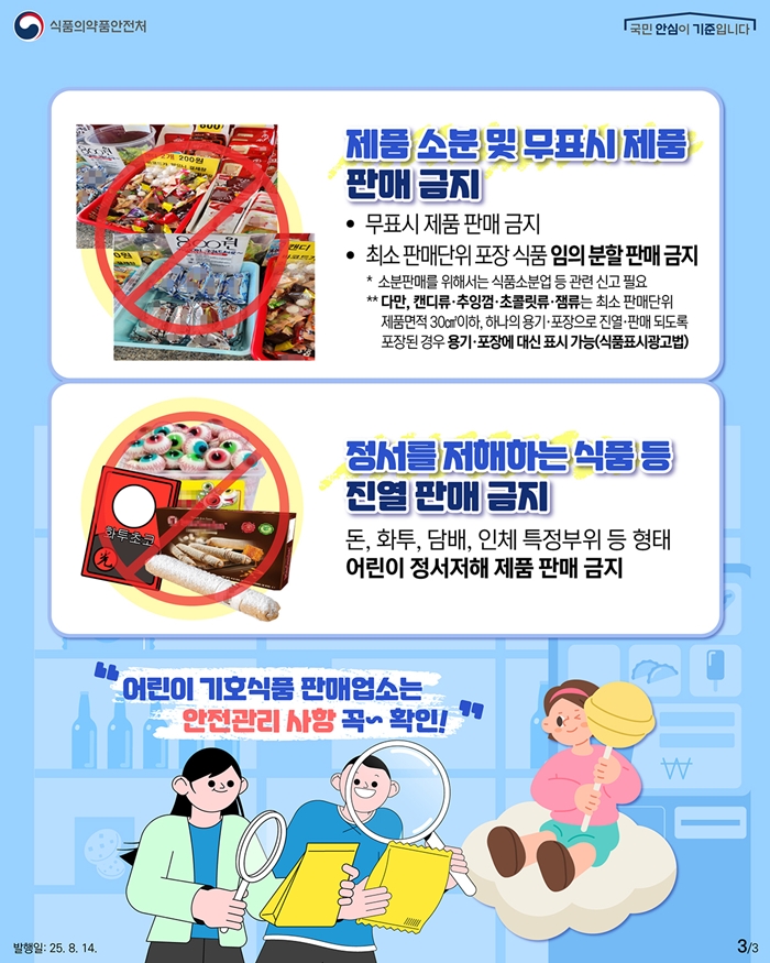 À̹ø Á¡°ËÀº 2¿ù 23ÀϺÎÅÍ 3¿ù 6ÀϱîÁö 2ÁÖ°£ ÁøÇàµÇ¸ç, ½ÄǰÀǾàǰ¾ÈÀüó¿¡¼ ÁöÁ¤ÇÑ ¾î¸°À̱âÈ£½Äǰ Á¶¸®·ÆÇ¸Å¾÷¼Ò 96°³¼Ò¸¦ ´ë»óÀ¸·Î ÃßÁøµÈ´Ù. ¾î¸°À̱âÈ£½ÄǰÀü´ã°ü¸®¿ø µî 4°³ ¹Ý 8¸íÀ¸·Î ±¸¼ºµÈ Á¡°Ë¹ÝÀÌ À§»ý°ü¸® Àü¹ÝÀ» ÁýÁß Á¡°ËÇÒ ¿¹Á¤ÀÌ´Ù.