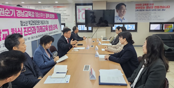 [½Ã»çÄÚ¸®¾ÆÀú³Î=Á¤Á¾¹Î ¼±ÀÓ±âÀÚ] ‘º¸¼ö·Áßµµ °æ³²±³À°°¨ Èĺ¸ ´ÜÀÏÈ ¿¬´ë’ÀÇ ´ÜÀÏÈĺ¸ÀÎ ±Ç¼ø±â ¿¹ºñÈ帴 24ÀÏ °æ³² â¿ø½Ã ÀÇⱸ Çö´ë¸ÞµðÄà ºôµù 10Ãþ ¼±°Å»ç¹«¼Ò¿¡¼ û¼Ò³â Çб³ Àü¹®°¡¸¦ ÃÊû ‘Çб³ Çö½Ç Áø´Ü°ú ¹Ì·¡ ±³À° ¹æÇâ’À̶ó´Â ÁÖÁ¦·Î Åä·Ðȸ¸¦ °¡Á³´Ù.