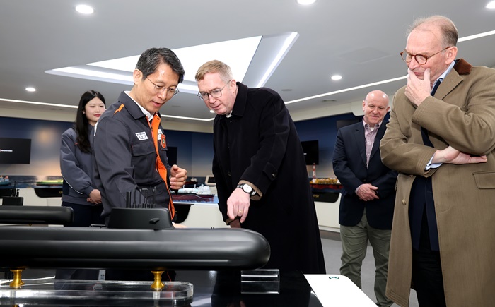 [½Ã»çÄÚ¸®¾ÆÀú³Î=Á¤Á¾¹Î ¼±ÀÓ±âÀÚ] Äݸ° Å©·è½º(Colin Crooks) ÁÖÇÑ ¿µ±¹ ´ë»ç°¡ 27ÀÏ ¿ÀÀü ÇÑÈ¿À¼Ç °ÅÁ¦»ç¾÷ÀåÀ» ¹æ¹®ÇØ À庸°í-III ¹èÄ¡-II Àá¼öÇÔ °ÇÁ¶ ÇöÀåÀ» µÑ·¯º¸°í ÇÑ·¿µ Çù·Â ÇöȲÀ» Á¡°ËÇß´Ù.