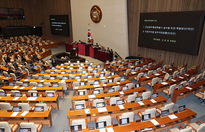 [½Ã»çÄÚ¸®¾ÆÀú³Î=Á¤Á¾¹Î ¼±ÀÓ±âÀÚ] Àü³²±¤ÁÖ ÅëÇÕÆ¯º°¹ýÀÌ ±¹È¸ º»È¸ÀǸ¦ Åë°úÇÑ °¡¿îµ¥ ´ë±¸°æºÏ°ú Ãæ³²´ëÀü ÅëÇÕÀÌ 6·3 Áö¹æ¼±°Å Àü ÀÌ·ïÁú ¼ö ÀÖÀ»Áö¿¡ ´Ù½Ã °ü½ÉÀÌ ½ò¸°´Ù.