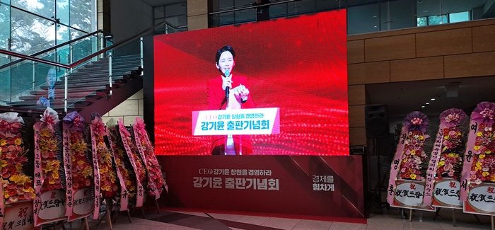 | °±âÀ± Àü Çѱ¹³²µ¿¹ßÀü »çÀåÀÇ ‘CEO °±âÀ± â¿øÀ» °æ¿µÇ϶ó’ ÃâÆÇ±â³äȸÀå ¹Û¿¡ ¼³Ä¡µÈ ´ëÇü ¸ð´ÏÅÍ È¸é. |