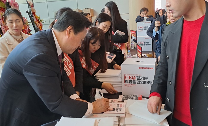 [½Ã»çÄÚ¸®¾ÆÀú³Î=Á¤Á¾¹Î ¼±ÀÓ±âÀÚ] °±âÀ± Àü Çѱ¹³²µ¿¹ßÀü »çÀåÀÇ »î°ú °íÇâ â¿ø ¹ßÀü ±¸»óÀ» ´ãÀº Àú¼ ‘CEO °±âÀ± â¿øÀ» °æ¿µÇ϶ó’ ÃâÆÇ±â³äȸ°¡ Áö³ 1ÀÏ ¿ÀÈÄ Ã¢¿ø½Ã ¼º»ê±¸ â¿øÄÁº¥¼Ç¼¾ÅÍ(CECO) ÄÁº¥¼ÇȦ¿¡¼ 8,000¿©¸í(ÁÖÃÖÃø Ãß»ê)ÀÇ ÀÎÆÄ°¡ ¸ô¸®¸é¼ ´ë¼ºÈ²À» ÀÌ·ð´Ù.
