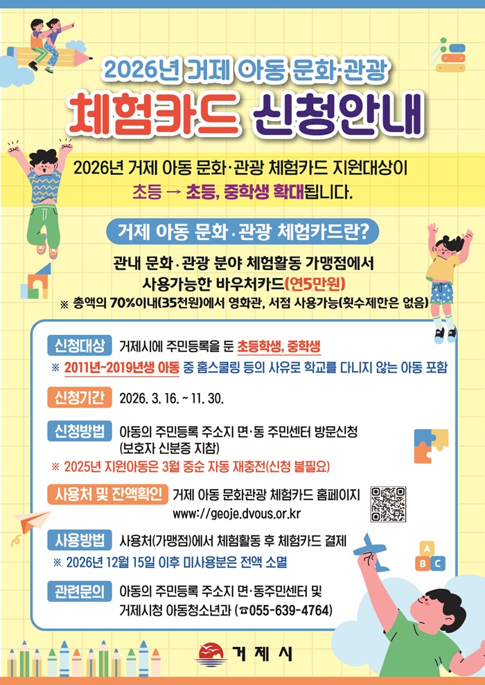[½Ã»çÄÚ¸®¾ÆÀú³Î=Á¤Á¾¹Î ¼±ÀÓ±âÀÚ] °ÅÁ¦½Ã°¡ ´Ù¾çÇÑ ¿¬·É´ë ¾Æµ¿¿¡°Ô üÇè ±âȸ¸¦ Á¦°øÇϱâ À§ÇØ ‘°ÅÁ¦ ¾Æµ¿ ¹®È·°ü±¤ üÇèÄ«µå Áö¿ø’»ç¾÷À» ½ÃÇàÇÑ´Ù.
