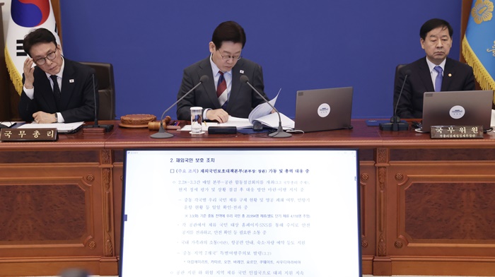 | ÀÌÀç¸í ´ëÅë·ÉÀÌ 5ÀÏ Ã»¿Í´ë¿¡¼ Áßµ¿ »óȲ ´ëÀÀÃ¥ ³íÀǸ¦ À§ÇÑ ±¹¹«È¸ÀǸ¦ ÁÖÀçÇϰí ÀÖ´Ù. /¿¬ÇÕ´º½º |
