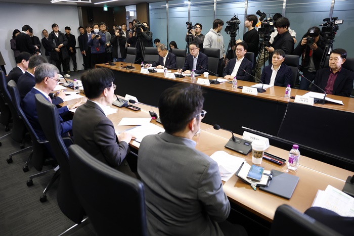 | 9ÀÏ ¼¿ï ´ëÇÑ»ó°øÈ¸ÀǼҿ¡¼ ¿¸° Áßµ¿»óȲ´ëÀÀº»ºÎ ȸÀÇ¿¡¼ Á¤À¯¾÷°è °ü°èÀÚµéÀÌ ±èÁ¤°ü »ê¾÷Åë»óºÎ Àå°üÀÇ ¹ß¾ðÀ» µè°í ÀÖ´Ù. /¿¬ÇÕ´º½º |