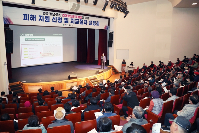 [½Ã»çÄÚ¸®¾ÆÀú³Î=±è¿¬ÇÐ ±âÀÚ] ¾Èµ¿½Ã´Â ¡¸°æºÏ·°æ³²·¿ï»ê ÃÊ´ëÇü»êºÒ ÇÇÇØ±¸Á¦ ¹× Áö¿ø µîÀ» À§ÇÑ Æ¯º°¹ý(ÀÌÇÏ Æ¯º°¹ý)¡¹ÀÇ ½ÃÇà¿¡ µû¶ó ÃßÁøµÇ´Â ÇÇÇØ Áö¿ø½Åû°ú Áö±Þ ÀýÂ÷ ¾È³»¸¦ À§ÇÑ 13ÀÏ °£ÀÇ ÁýÁß ¼³¸íȸ¸¦ Áö³ 6ÀÏ ¸¶¹«¸®Çß´Ù.