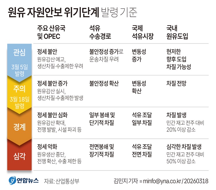 [½Ã»çÄÚ¸®¾ÆÀú³Î=±è¿¬ÇÐ ±âÀÚ] ¹Ì±¹·À̶õ ÀüÀïÀÌ Àå±âÈ Á¶ÁüÀ» º¸ÀÌ¸ç ¼®À¯ ¼ö±Þ À§±â°¡ °¡½ÃȵÇÀÚ Á¤ºÎ°¡ 18ÀÏ ¿ÀÈÄ 3½ÃºÎ·Î ¿øÀ¯¿¡ ´ëÇÑ ÀÚ¿ø¾Èº¸ À§±â°æº¸¸¦ '°ü½É'¿¡¼ 'ÁÖÀÇ'·Î ÇÑ ´Ü°è °Ý»óÇß´Ù.