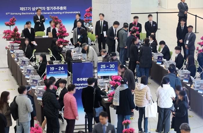 | 18ÀÏ °æ±âµµ ¼ö¿ø½Ã ¿µÅ뱸 ¼ö¿øÄÁº¥¼Ç¼¾ÅÍ¿¡¼ ¿¸° Á¦57±â »ï¼ºÀüÀÚ Á¤±âÁÖÁÖÃÑȸ¿¡¼ ÁÖÁÖµéÀÌ ÁÖÁÖ È®ÀÎÀ» Çϰí ÀÖ´Ù. /°øµ¿ÃëÀç |