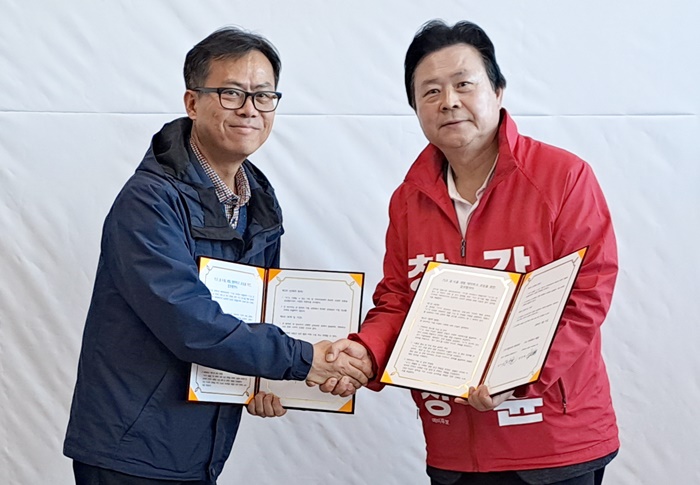 | °±âÀ± â¿ø½ÃÀå ¿¹ºñÈĺ¸¿Í (ÁÖ)¿¡¼¿ ±èÁøÇõ ´ëÇ¥À̻簡 21ÀÏ Ã¢¿ø½Ã ¸¶»êȸ¿ø±¸ ºÀ¾Ïµ¿ °±âÀ± ¿¹ºñÈĺ¸ ¼±°Å»ç¹«¼Ò¿¡¼ ‘ŰÁî µ¿·½Ä¹° üÇè Å׸¶ÆÄÅ©’ÀÇ ¼º°øÀûÀÎ Á¶¼º°ú ¿î¿µÀ» À§ÇÑ Çù¹«Çù¾àÀ» ü°áÇÏ¸é¼ ¼¸í°ú ÇÔ²² Çù¾à¼¸¦ ±³È¯Çϰí ÀÖ´Ù. |