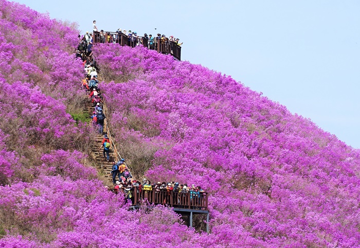 ¸Å³â 4¿ù ÃÊ Áø´Þ·¡°¡ ¸¸°³ÇÏ¸é¼ ÁøºÐÈ«»öÀ¸·Î ¹°µé¾î Àå°üÀ» ¿¬ÃâÇÑ´Ù.
