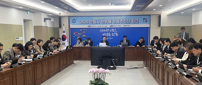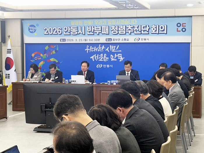 [½Ã»çÄÚ¸®¾ÆÀú³Î=±è¿¬ÇÐ ±âÀÚ] ¾Èµ¿½Ã´Â Áö³ 23ÀÏ, ¾Èµ¿½Ãû ¿õºÎ°ü ¼ÒÅë½Ç¿¡¼ ±Ç±â⠾ȵ¿½ÃÀåÀ» ºñ·ÔÇÑ ºÎ½ÃÀå, ±¹·¼ÒÀå µî °£ºÎ°ø¹«¿øÀÌ Âü¼®ÇÑ °¡¿îµ¥ ‘2026³â ¹ÝºÎÆÐ·Ã»·Å ÃßÁø´Ü ȸÀÇ’¸¦ °³ÃÖÇϰí, Á¾ÇÕû·Åµµ Çâ»óÀ» À§ÇÑ ÃßÁøÃ¼°è¿Í ¹ÝºÎÆÐ·Ã»·Å Á¾ÇÕ°èȹÀ» °øÀ¯Çß´Ù.