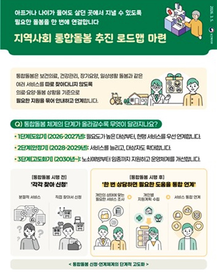 º¸°Çº¹ÁöºÎ´Â ³ëÀΰú Àå¾ÖÀÎÀÌ º´¿øÀ̳ª ½Ã¼³ÀÌ ¾Æ´Ñ Æò»ý »ì´ø °÷¿¡¼ °Ç°ÇÏ°Ô ³ëÈĸ¦ º¸³¾ ¼ö ÀÖ´Â Áö¿ª»çȸ ÅëÇÕµ¹º½ Á¦µµ¸¦ ¿À´Â 27ÀϺÎÅÍ Àü±¹ÀûÀ¸·Î ½ÃÇàÇÑ´Ù°í 24ÀÏ ¹àÇû´Ù.