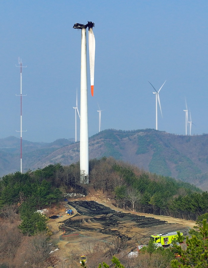 | 24ÀÏ ¿ÀÀü °æºÏ ¿µ´ö±º ¿µ´öÀ¾ âÆ÷¸® dz·Â¹ßÀü´ÜÁö ³» ÇÑ Ç³·Â¹ßÀü±â°¡ Àü³¯ ÈÀç·Î °Ë°Ô Ÿ¹ö¸° °¡¿îµ¥ ÇØ´ç ¹ßÀü±â ³Ê¸Ó·Î ¸ØÃç ¼± dz·Â¹ßÀü±âµéÀÌ º¸ÀδÙ. /¿¬ÇÕ´º½º |