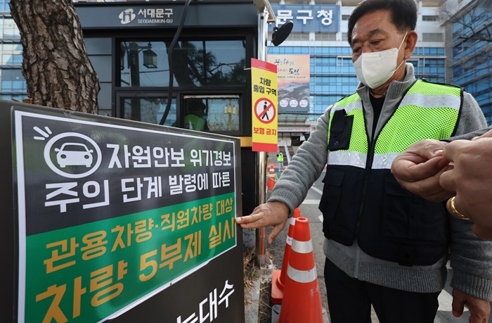 | 25ÀÏ ¼¿ï ¼´ë¹®±¸Ã»¿¡¼ °ü°èÀÚµéÀÌ ÁÖÂ÷Àå ÀÔ±¸¿¡ °ø°øºÎ¹® '½Â¿ëÂ÷ 5ºÎÁ¦' °ü·Ã ¾È³»¹®À» ºÙÀ̰í ÀÖ´Ù. /¿¬ÇÕ´º½º |