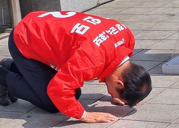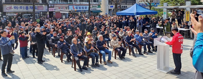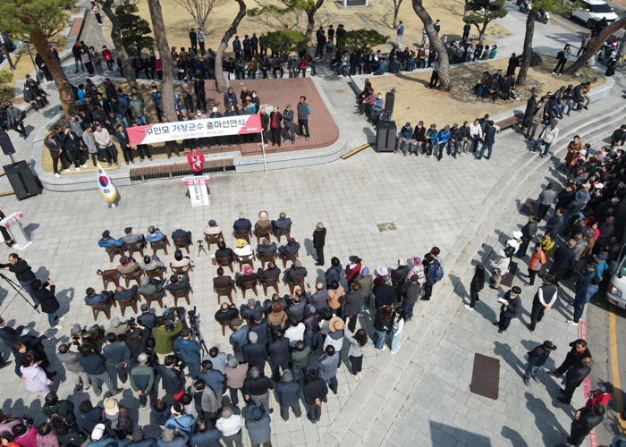 | ±¸ÀÓ¸ð °Åⱺ¼ö°¡ 26ÀÏ ¿¹ºñÈĺ¸ µî·ÏÀ» ÇÑ µÚ °Åⱺû¾Õ ±¤Àå¿¡¼ Ã⸶¼±¾ðÀ» Çϰí ÀÖ´Ù. /µå·ÐÃÔ¿µ=±¸Àθ𠿹ºñÈĺ¸ ¼±°Å»ç¹«½Ç Á¦°ø |