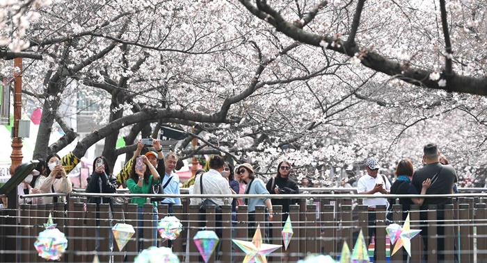 | ±¹³» ÃÖ´ë º½²É ÃàÁ¦ÀÎ 'ÁøÇرºÇ×Á¦' °³¸·ÀÏÀÎ 27ÀÏ ¿ÀÈÄ °æ³² â¿ø½Ã ÁøÇر¸ ¿©ÁÂõ Àϴ븦 ãÀº °ü±¤°´ÀÌ º¢²ÉÀ» ±¸°æÇÏ¸ç º½±â¿îÀ» ¸¸³£Çϰí ÀÖ´Ù. /¿¬ÇÕ´º½º |