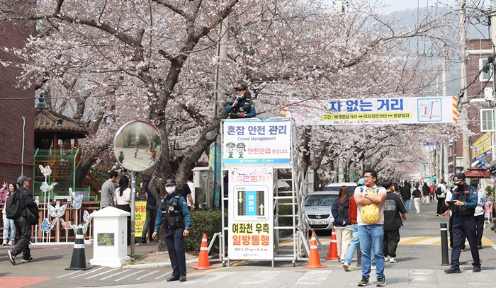 | ±¹³» ÃÖ´ë º½²É ÃàÁ¦ 'ÁøÇرºÇ×Á¦' °³¸·ÀÏÀÎ 27ÀÏ ¿ÀÈÄ °æ³² â¿ø½Ã ÁøÇر¸ ¿©ÁÂõ ÀÏ´ë¿¡¼ °æ³²°æÂûÀÌ È¥Àâ ¾ÈÀü °ü¸® ¾È³»¸¦ Çϰí ÀÖ´Ù. /¿¬ÇÕ´º½º |