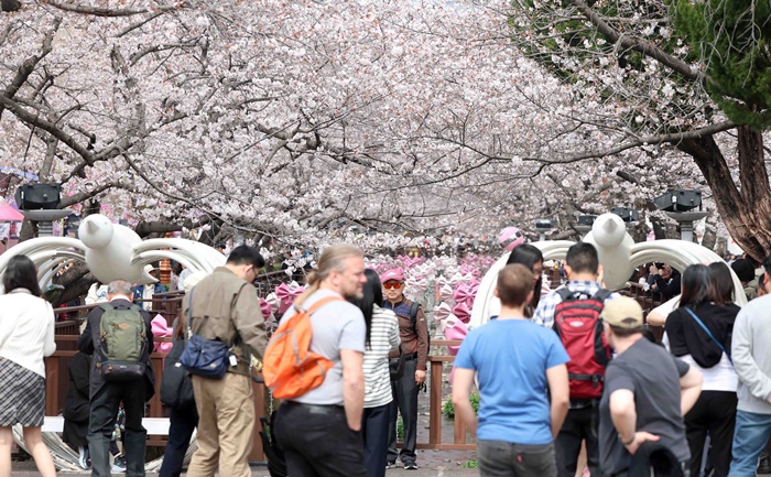 | ±¹³» ÃÖ´ë º½²É ÃàÁ¦ 'ÁøÇرºÇ×Á¦' °³¸·ÀÏÀÎ 27ÀÏ ¿ÀÈÄ °æ³² â¿ø½Ã ÁøÇر¸ ¿©ÁÂõ Àϴ븦 ãÀº °ü±¤°´ÀÌ º¢²ÉÀ» ±¸°æÇÏ¸ç º½±â¿îÀ» ¸¸³£Çϰí ÀÖ´Ù. /¿¬ÇÕ´º½º |