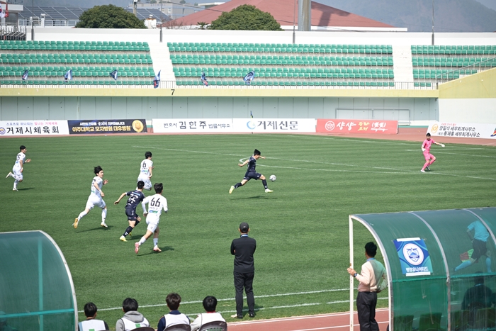 ÈĹÝÀü¿¡µµ ÆØÆØÇÑ Á¢ÀüÀÌ À̾îÁø °¡¿îµ¥, °ÅÁ¦½Ã¹ÎÃ౸´ÜÀº ÈÄ¹Ý 72ºÐ 17¹ø ±è¹Îâ ¼±¼öÀÇ °ñ·Î ´Ù½Ã 2´ë2 µ¿Á¡À» ¸¸µé¾ú´Ù. ÀÌÈÄ Ãß°¡ µæÁ¡ ¾øÀÌ °æ±â°¡ Á¾·áµÇ¸ç ¾ç ÆÀÀº ½ÂÁ¡ 1Á¡¾¿À» ³ª´² °¡Á³´Ù.