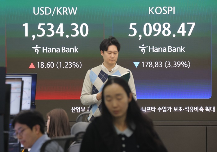 ¿ø/´Þ·¯ ȯÀ²Àº ÀåÁß 20¿ø ³Ñ°Ô ¶Ù¾î¼ ±ÝÀ¶À§±â ÀÌÈÄ Ã³À½À¸·Î 1,530¿øÀ» ³Ñ¾ú°í ÄÚ½ºÇÇ´Â 4% ³Ñ°Ô ±Þ¶ôÇØ 5,100¼±À» ³»Áá´Ù.