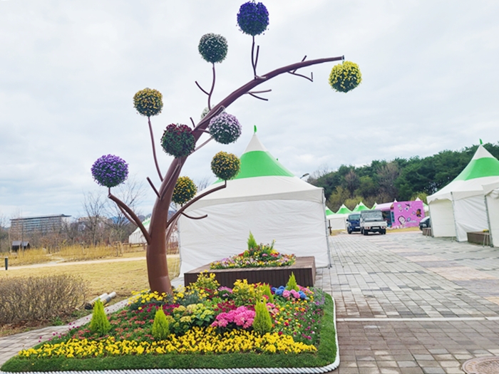 À̹ø Á¶Çü¹°Àº ´ëȸ °³¸·½ÄÀÌ ¿¸®´Â °æºÏµµÃ» »õ¸¶À»±¤Àå¿¡ Á¶¼ºµÆÀ¸¸ç, ²¨ÁöÁö ¾Ê´Â ºÒ²ÉÀ» Çü»óÈÇØ ¿Á¤°ú Èñ¸Á, Áö¼ÓÀûÀÎ µµ¾àÀÇ Àǹ̸¦ ´ã°í ÀÖ´Ù. ƯÈ÷ Çϴ÷Πġ¼Ú´Â ºÒ²ÉÀÇ ¿ªµ¿ÀûÀÎ °î¼±Àº µµ¹Î ¸ðµÎ°¡ Çϳª·Î ¹¶ÃÄ ¹Ì·¡·Î ³ª¾Æ°¡´Â ÈûÀ» »ó¡ÀûÀ¸·Î Ç¥ÇöÇϰí ÀÖ´Ù.